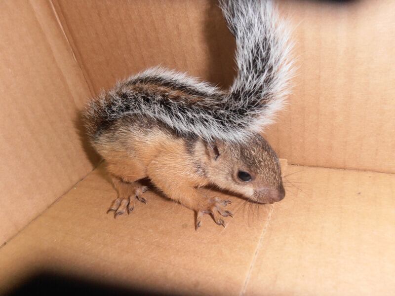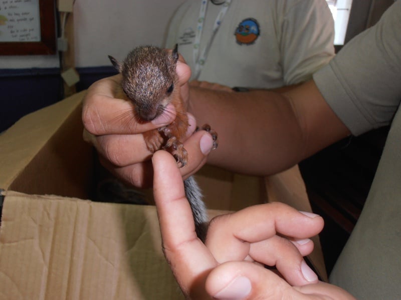 Dos ardillas de aproximadamente de 15 días de nacidas fueron rescatadas por Efraín González, un peatón que las ubicó debajo de un árbol en los alrededores de Palmar Norte de Osa a las 7:30 a. m. de este domingo.