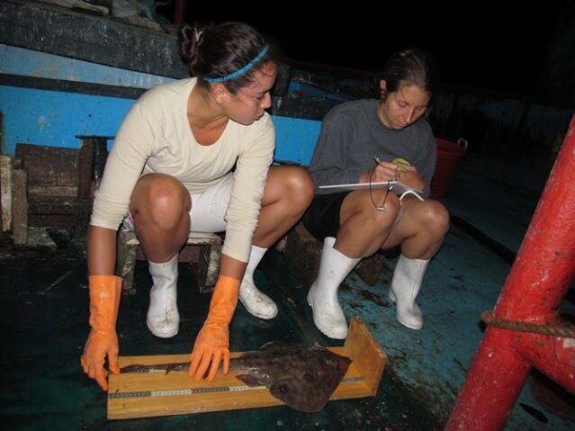 Los especímenes capturados se pesaron y midieron. Además, se anotó su sexo. También se les extrajo cinco gramos de músculo de la base de la aleta dorsal en tiburones, y del disco ventral izquierdo, en las rayas.