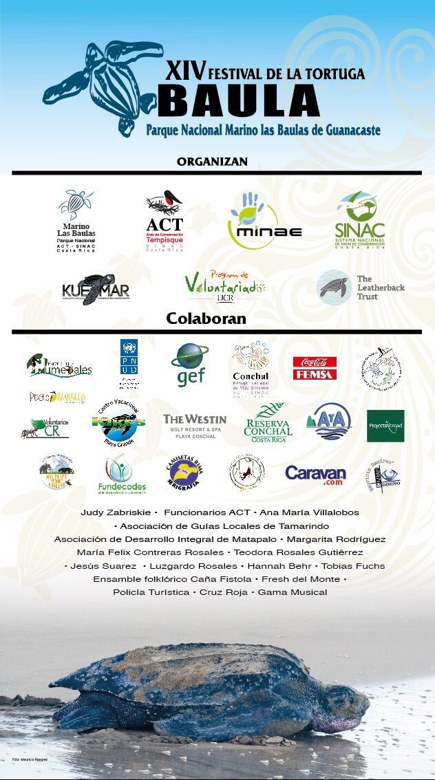El primero de ellos se realizará en el Parque Nacional Marino Las Baulas de Guanacaste, en el sector de playa Grande. Allí tendrá lugar el XIV Festival de la Tortuga Baula, con el cual se cierra la temporada de anidación que arrancó en octubre del 2016.