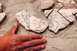 Debido al entierro, se preservó la mitad inferior del mural de casi 15 metros de largo. Pero la mitad superior, de unos 30 centímetros de alto, se fragmentó en unos 25.000 pedazos, que los arqueólogos se aprestan a rearmar trabajosamente.