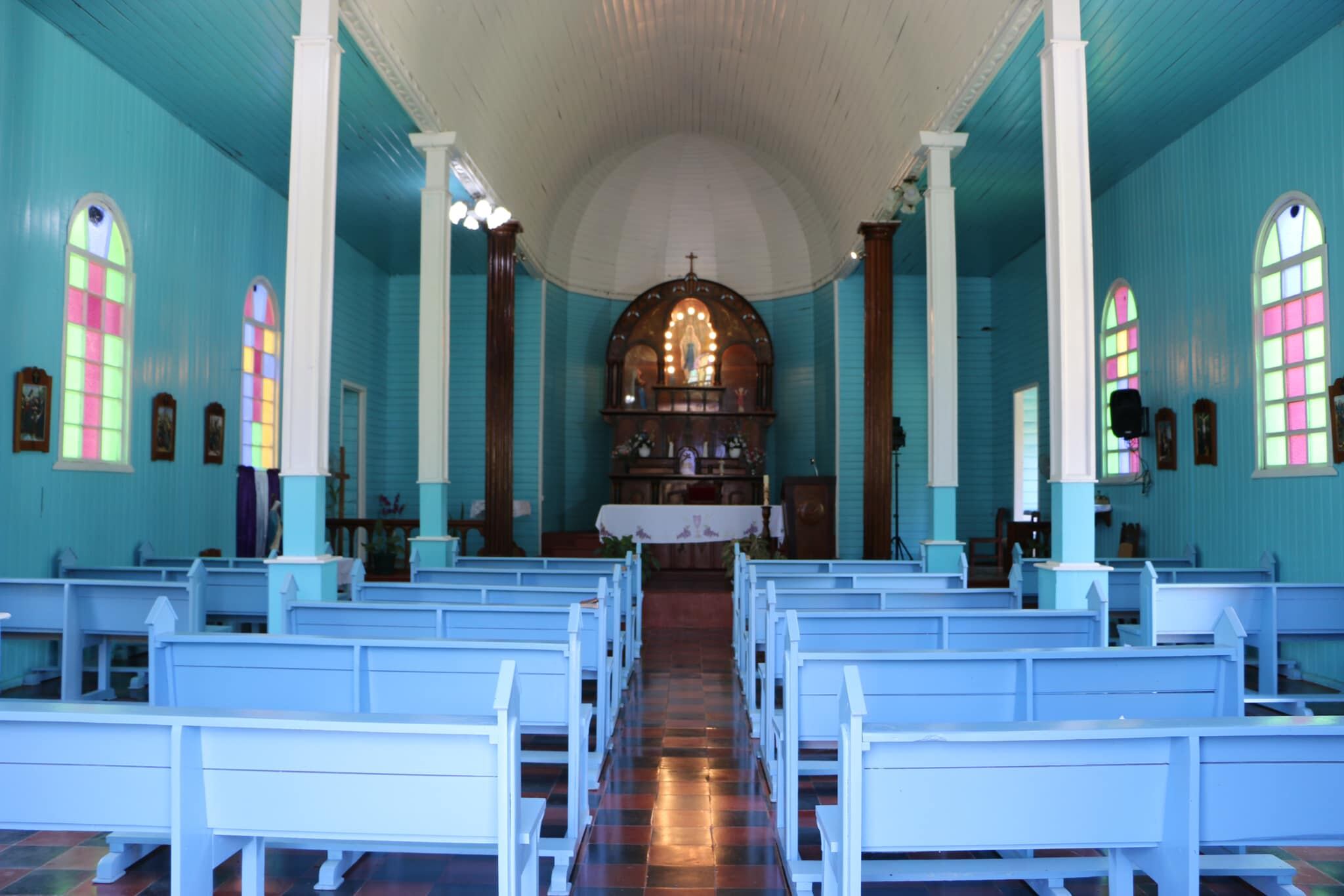 María Luisa Barquero Sandí, de la Junta Pastoral, comentó a La Nación que el templo tiene una estructura de madera por dentro y es forrada por fuera con una lata. Las columnas y el cielorraso, con sus diseños, son de las partes favoritas de las personas.