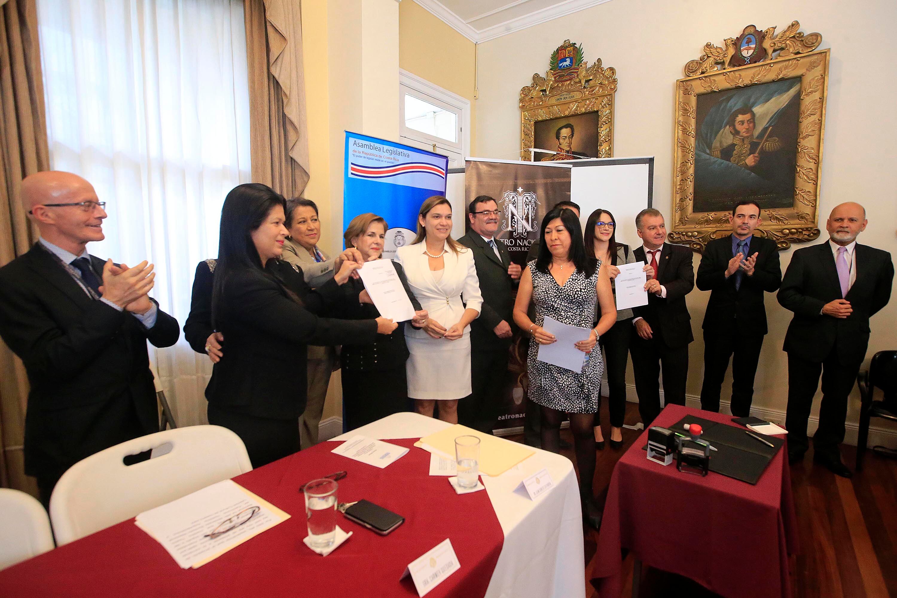 La firma de dicho documento se llevó a cabo en un acto realizado en la Sala de próceres, libertadores y libertadoras de América, ubicada en el edificio legislativo conocido como El Castillo Azul, en Cuesta de Moras, San José.