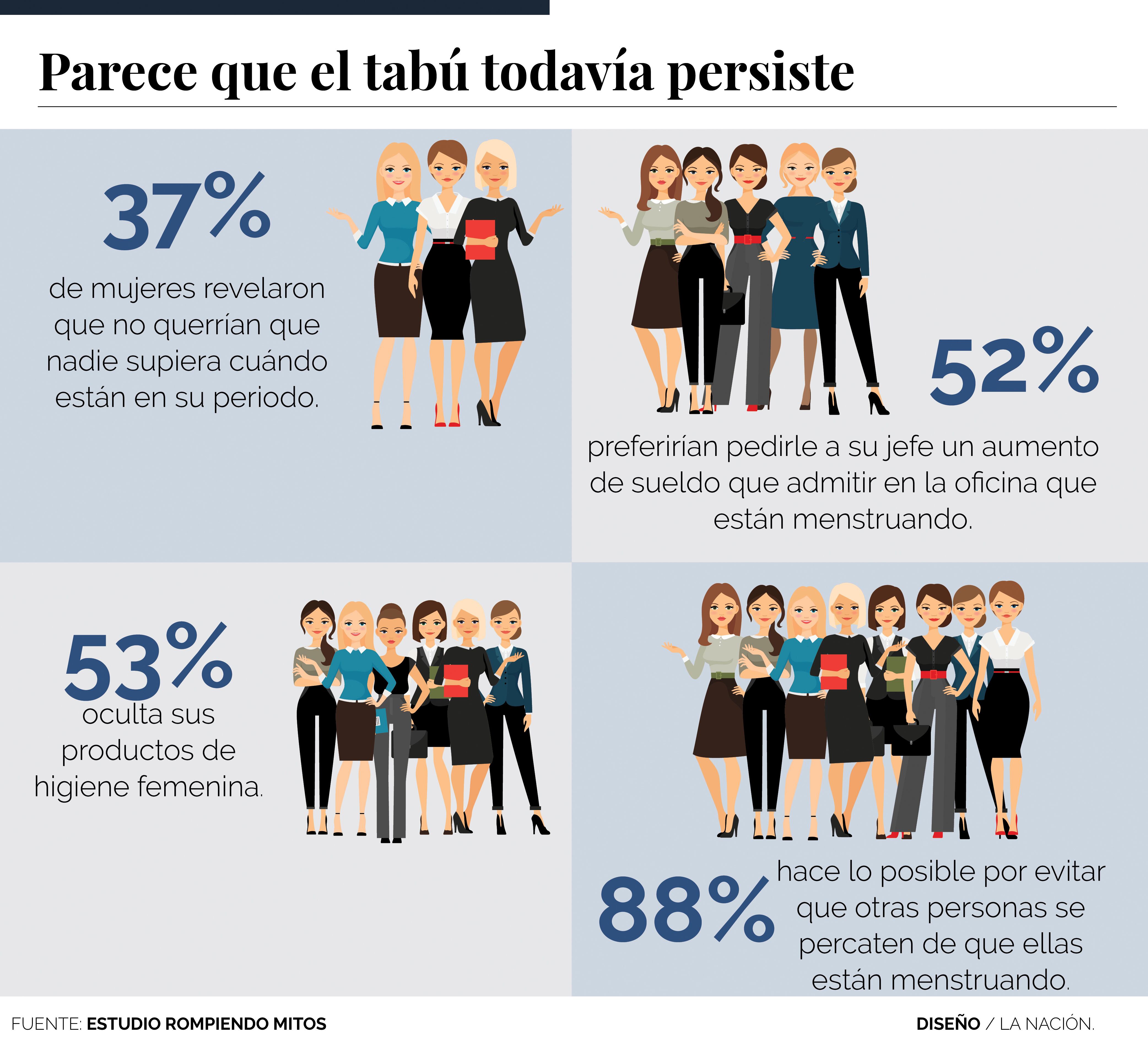 Por ejemplo, el 52% de las participantes del estudio Rompiendo Mitos dijo que preferiría pedirle a su jefe un aumento de sueldo que admitir en la oficina que estaba en su periodo.