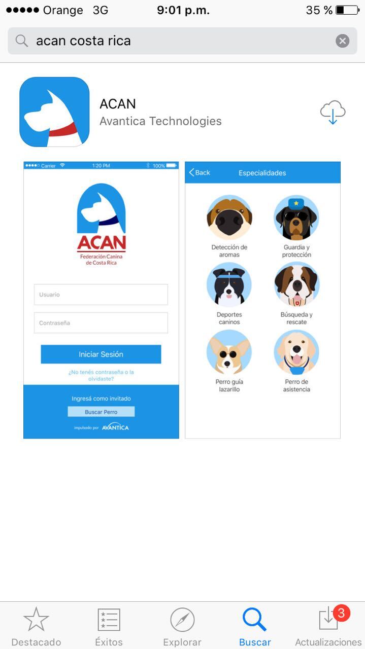 La app ACAN Costa Rica, lanzada recientemente por la Federación Canina de Costa Rica (ACAN), está disponible para los sistemas operativos iOS y Android. Es de descarga gratuita.