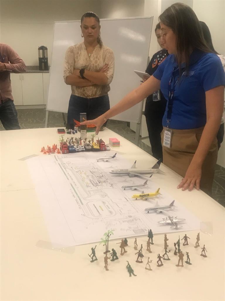 Con la prueba, revisaron cómo se manejaría la situación, tanto si las sospechas se dan cuando el avión viene en camino como si la persona registrara síntomas una vez llegada al edificio aeroportuario.
