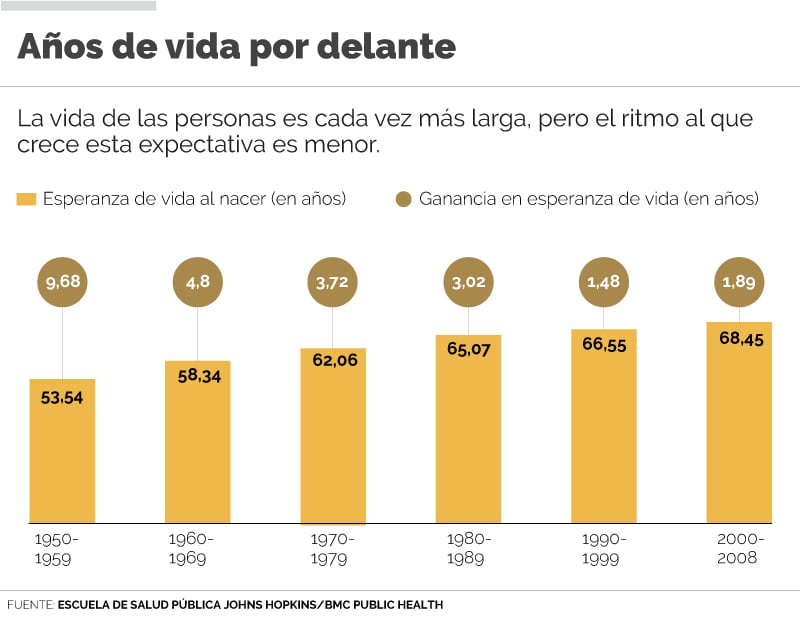 El reporte mostró que, mientras entre 1950 y 1959 la esperanza de vida aumentó 9,68 años, para la década de 2000 a 2009 el crecimiento fue de 1,89 años.