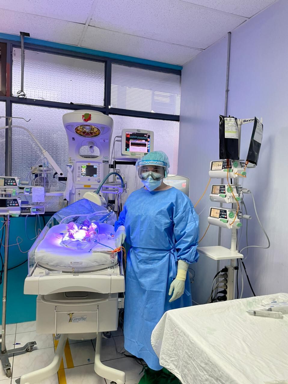 “A pesar de que estábamos preparados con la unidad covid-19 neonatal, fue un reto para el servicio de Neonatología la atención del bebé por su prematuridad y bajo peso, el requerimiento de ventilación mecánica y otros cuidados mayores”, comentó.