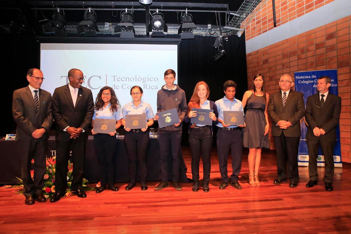 María Fernanda Araya Valerio, Luis Diego Navarro Araya, María José Pérez Durán, Alexa Carmona Buzo y Roberto Barrera García, de los colegios científicos de San Carlos, Cartago, Limón, Alajuela y Guanacaste, respectivamente, viajarán a diferentes zonas de Estados Unidos para estudiar durante un año y aprender el idioma, la cultura y lo que significa recibir formación en esa nación norteamericana.