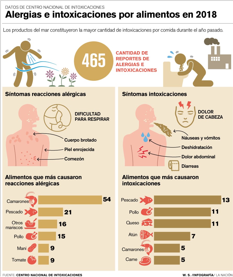 Datos suministrados por esta institución señalan que solo durante 2018 se reportaron 464 casos de reacciones alérgicas e intoxicaciones por consumo de alimentos. Esto es solo un porcentaje muy bajo de las que en realidad suceden, dado que muchísimos casos se logran manejar en casa sin requerir llamar a este centro y otros son vistos en consultorios privados o en clínicas, que aún y cuando son de la seguridad social no hacen el reporte.