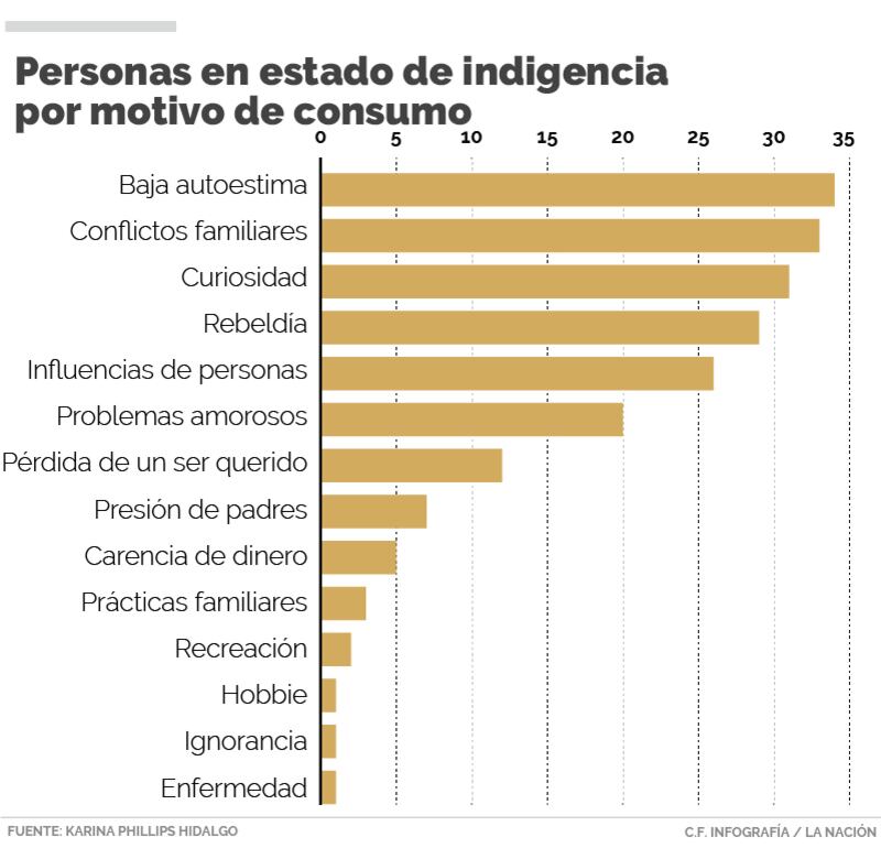 “Muchos están ahí porque una decepción amorosa los llevó a consumir drogas y está los llevó a la calle. La baja autoestima, los conflictos familiares, la rebeldía (...) ese morbo que ellos tenían cuando eran jóvenes, el qué se siente, la curiosidad es una de las causas más altas”, enlistó la investigadora.
