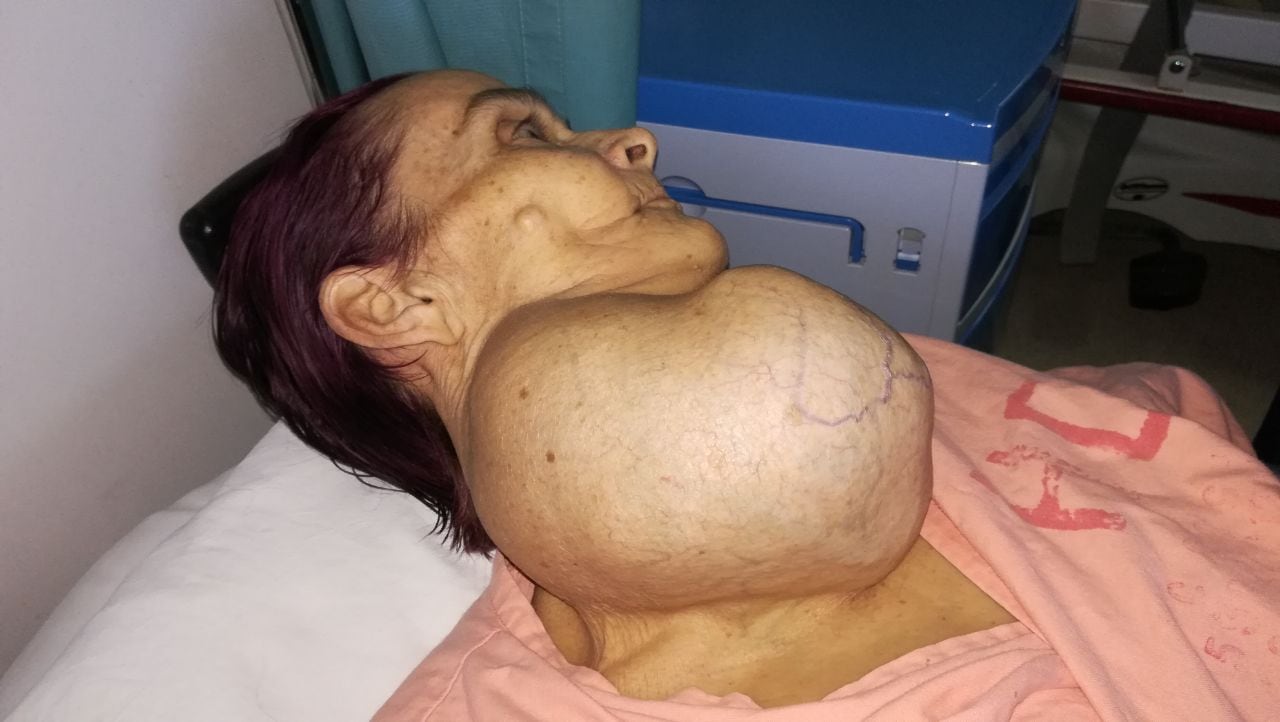 Luego de siete horas de cirugía, especialistas de diversas áreas del Hospital Calderón Guardia extrajeron un tumor gigante de 1.729 gramos de peso, de la tiroides de una mujer de 66 años.