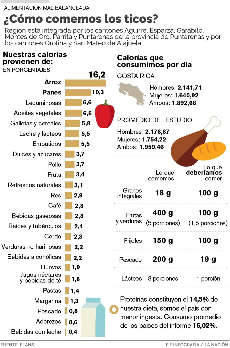 Una alimentación alta en azúcar y carbohidratos y muy baja en frutas, verduras, lácteos, pescado y leguminosas. Esta es una de las razones –no la única, aunque sí es relevante– que tiene a dos de cada tres costarricenses de zonas urbanas entre los 15 y los 65 años con exceso de peso.