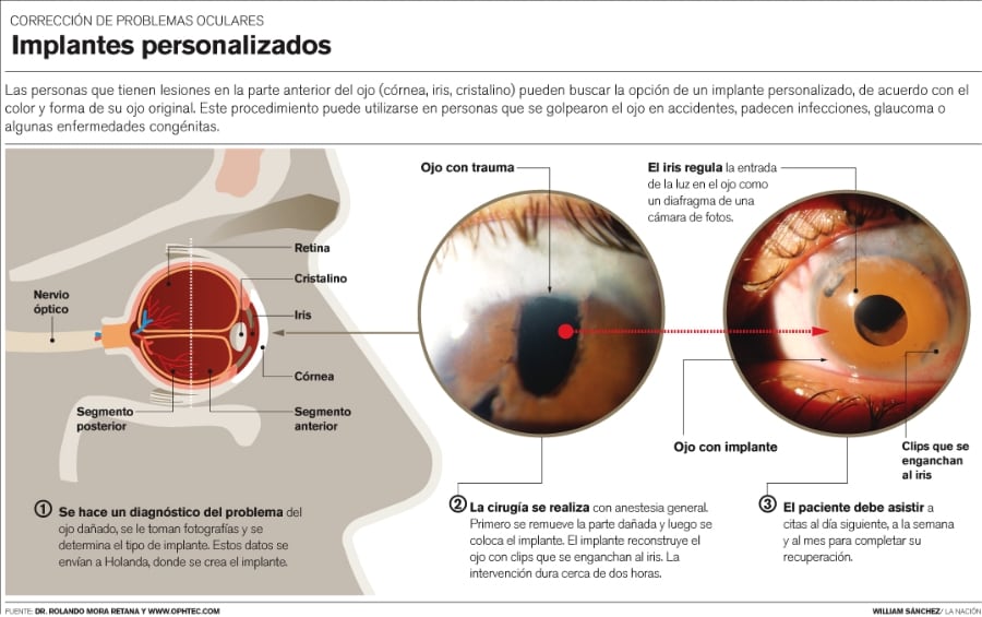 “Con el implante corregimos problemas estéticos que hacen que el ojo se vea como ‘fracturado’, pero también se solucionan problemas menores de vista distorsionada o de sensibilidad a la luz. También podemos corregir la miopía o hipermetropía, porque el lente puede pedirse con aumento”, dijo Rolando Mora, oftalmólogo que aplica la técnica.