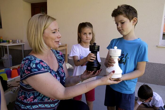 Otras piezas del tablero son el alfil ágil y el caballero saltarín, una forma de establecer complicidad entre el niño y el juego, sentar las bases para "desarrollar sus capacidades lógica, creativa y estratégica", explica Judit Polgar, una morena de mirada penetrante de 41 años de edad.