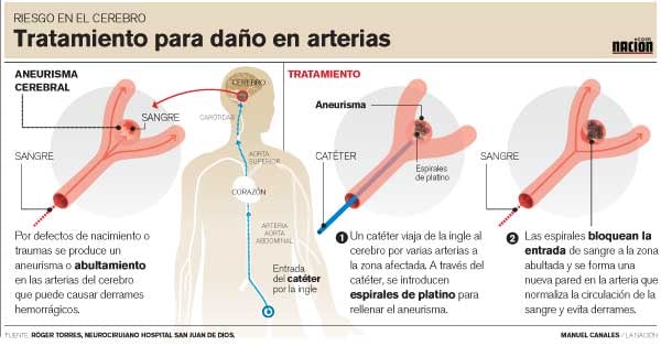 El procedimiento de terapia endovascular se realiza en el hospital San Juan de Dios (HSJD), único centro de la Caja Costarricense de Seguro Social (CCSS) que ofrece esta técnica para aneurismas cerebrales.