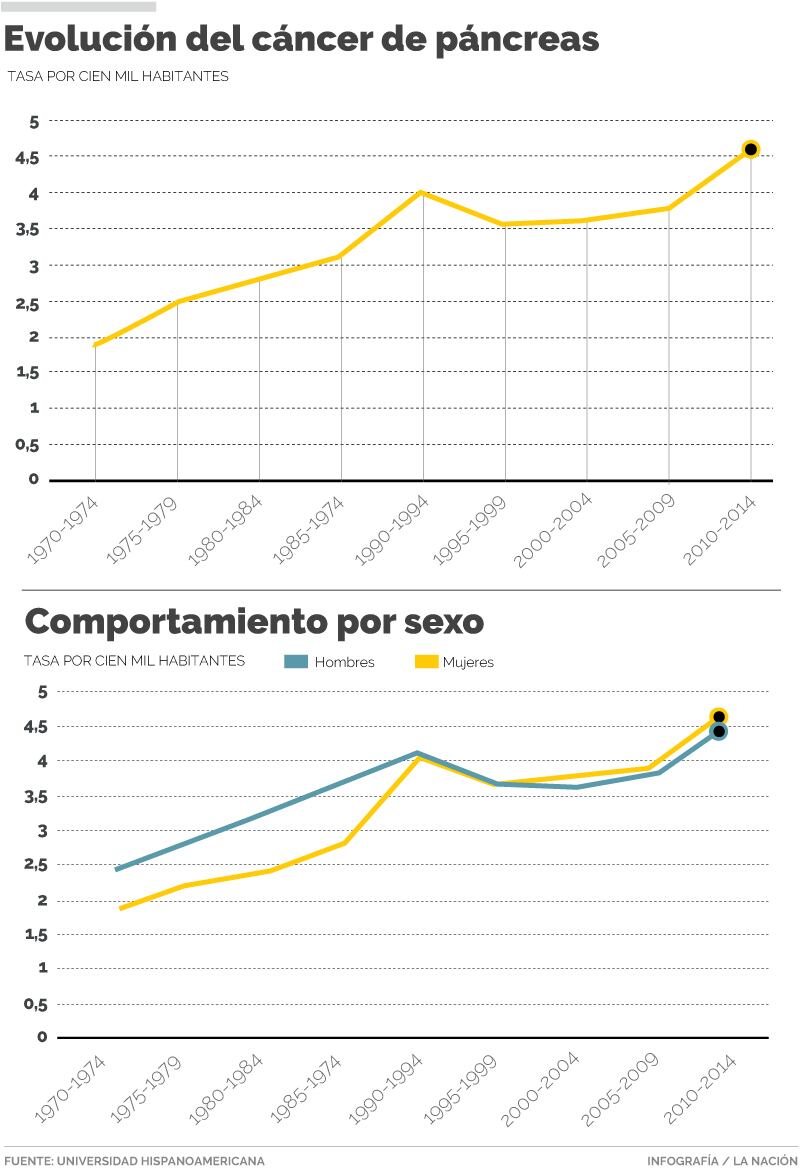 Estas cifras forman parte de la más reciente investigación denominada Evolución y características epidemiológicas de la mortalidad por cáncer de páncreas en Costa Rica, en el periodo 1970-2014 , que escudriñó las bases de datos del Centro Centroamericano de Población (CCP) y del Instituto Estadísticas y Censos (INEC).