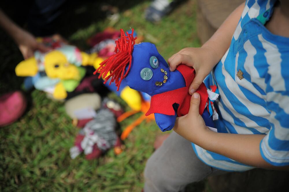 Este sábado en la mañana, el proyecto Presencia repartió los muñecos entre las personas que se acercaron al parque.
