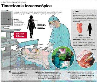 Se trata de la timectomía toracoscópica, operación mínimamente invasiva, que permite extraer una glándula disfuncional denominada timo, que genera dolores musculares al paciente.