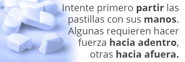 Si usted va a utilizar un dispositivo para partir pastillas, es importante limpiarlo bien antes de colocar un fármaco diferente.