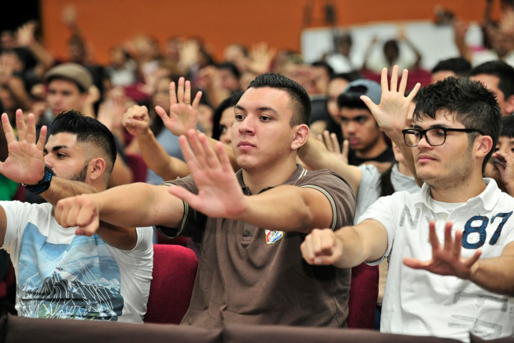 En un salón, decenas de personas aplauden y, con sincronía rítmica, golpean distintas partes del cuerpo con las palmas. Algunos cantan. Se mueven. Parece una coreografía o forma de hacer música en que los ritmos y movimientos se van haciendo más complejos.