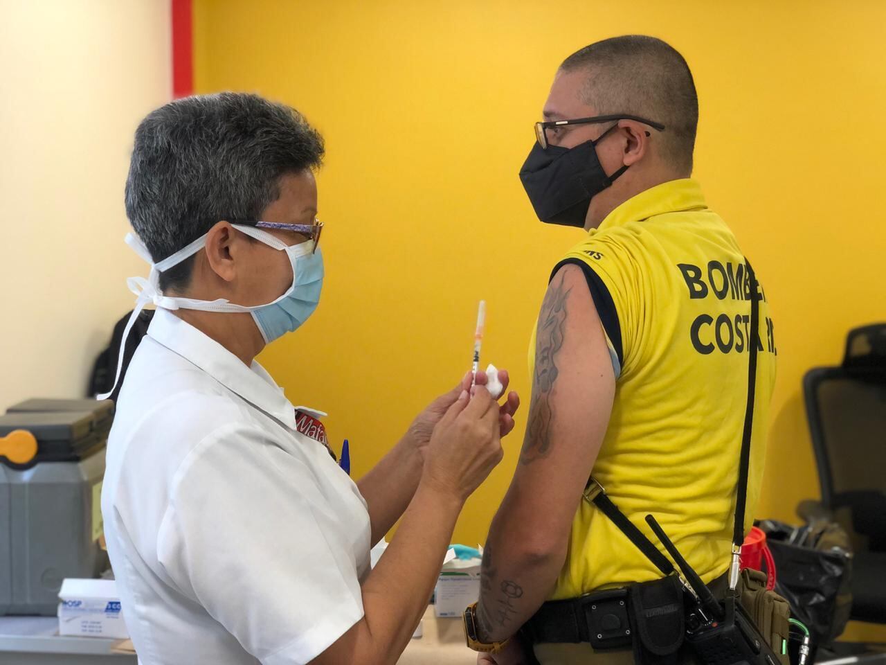 Este martes comenzaron a recibir la vacuna los funcionarios de Bomberos y la Fuerza Pública, que por su tipo de trabajo pasan en contacto con la población y están más expuestos al virus.