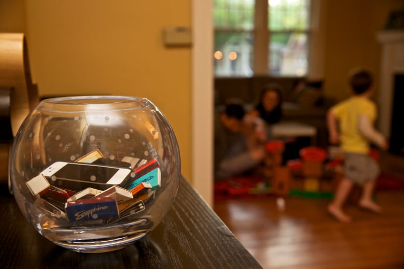 ¿Una pecera? Una táctica es designar una “caja para celulares”, como la lata de leche de Holley. “Si mi celular está vibrando, sigue siendo una distracción, así que va para a parar a la caja”, dijo Holley.