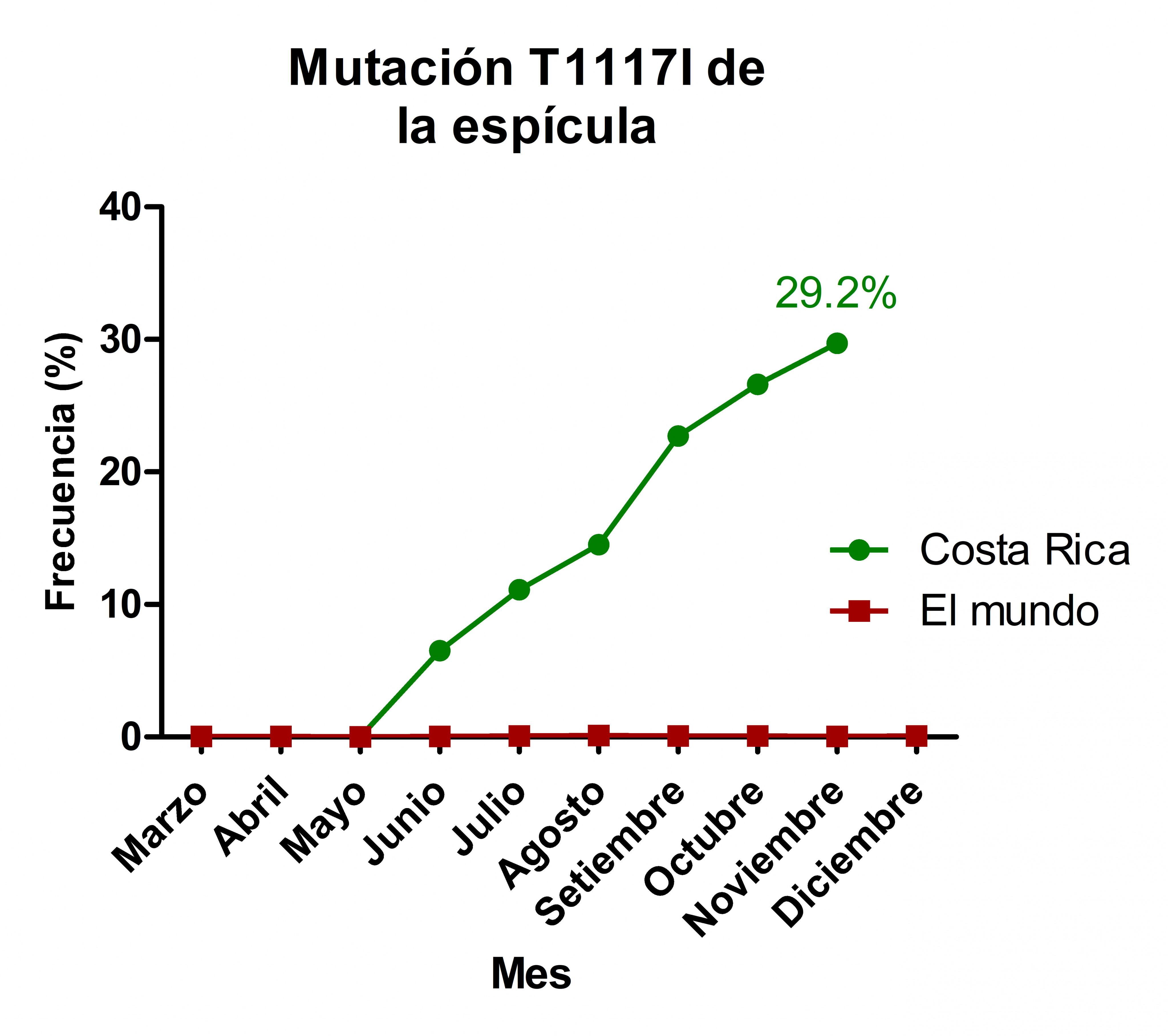 Para poner en dimensión las cosas, esta variante solo se ve en el 0,08% de los genomas analizados a nivel mundial. El 25,3% de los reportes de esta variante en todo el mundo provienen de Costa Rica.