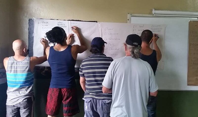 Fue así como empezó con el Taller de la Creatividad, sustentado en la pedagogía del reencuentro (de los privados de libertad) desde tres ejes: el personal, el familiar y el social.