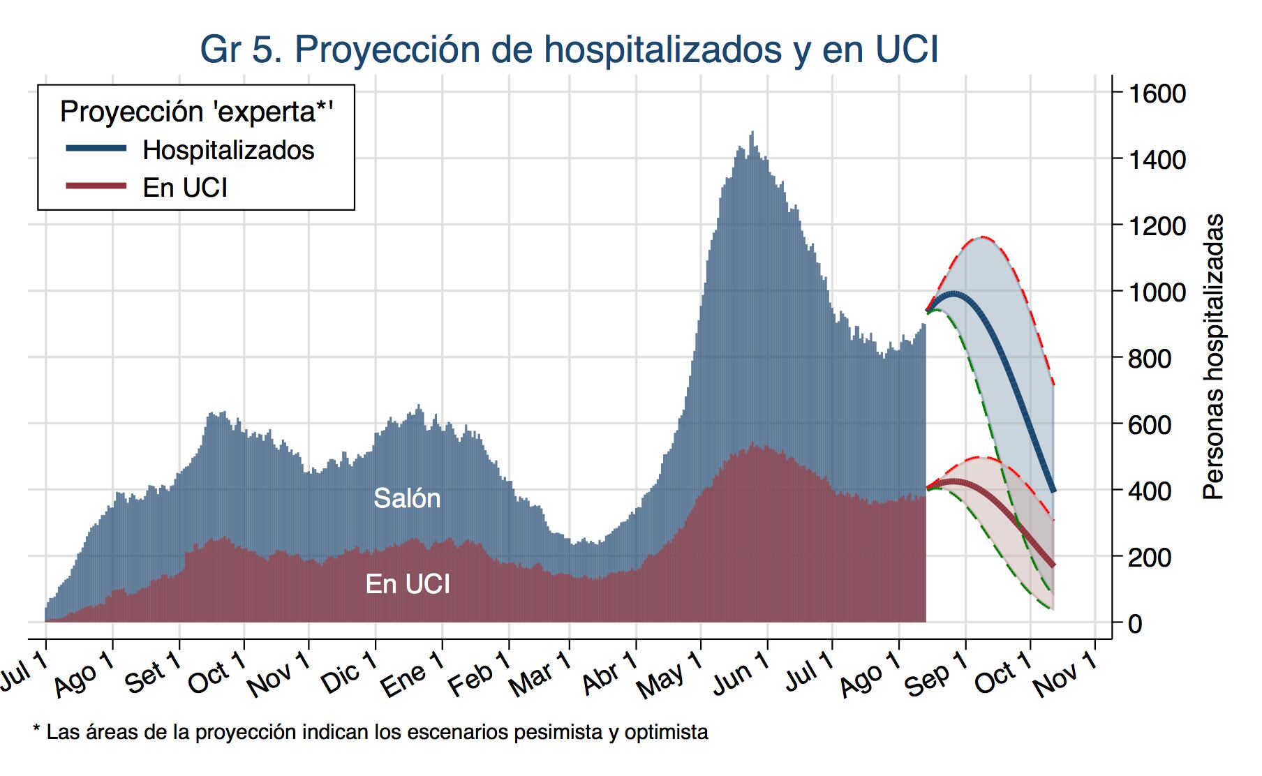 La cantidad de personas hospitalizadas alcanzará un pico de 1.000 internados a finales de agosto. Dentro de dos meses, a mediados de octubre, el país tendrá 400 personas hospitalizadas por covid-19, 200 en unidad de cuidado intensivo (UCI).