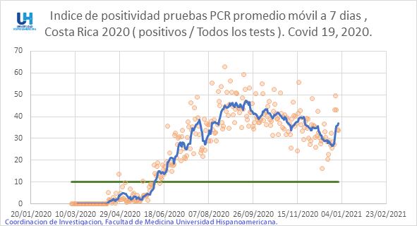 “Con excepción de los primeros tres meses, en Costa Rica este valor siempre ha estado por encima de 10. En la mayor parte de los casos, los valores han estado entre 30% y 50 % (de una de cada tres a una de cada dos)”, dijeron los científicos.