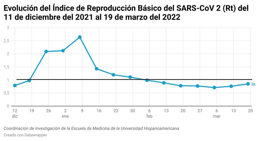 Luego de cinco semanas a la baja, la velocidad con la que se transmite la covid-19 ha aumentado en las últimas dos, según el reporte de la Universidad Hispanoamericana (UH) divulgado la mañana de este viernes. Por ahora, sin embargo, el incremento no es motivo de preocupación ni tampoco implica que una nueva ola pueda darse.
