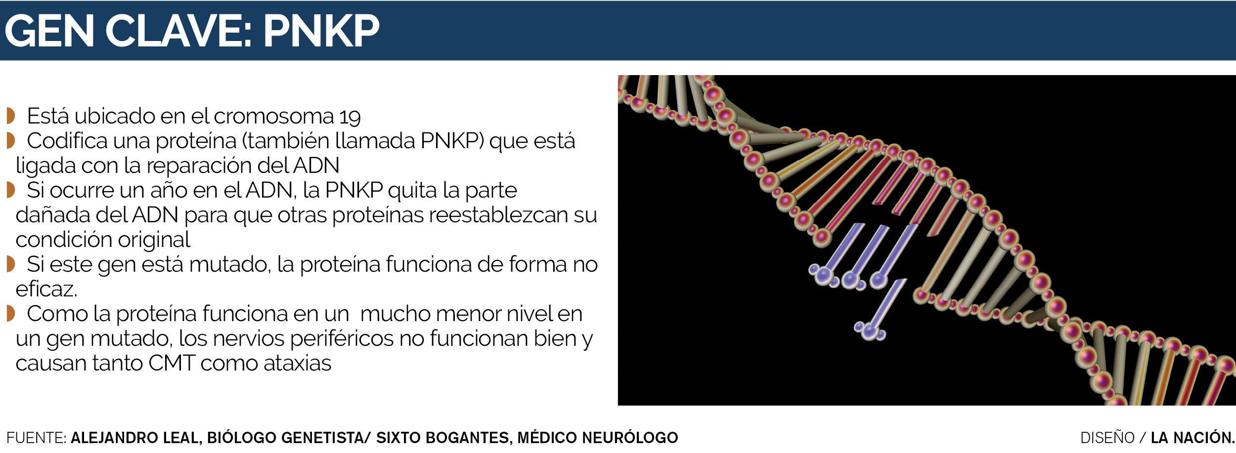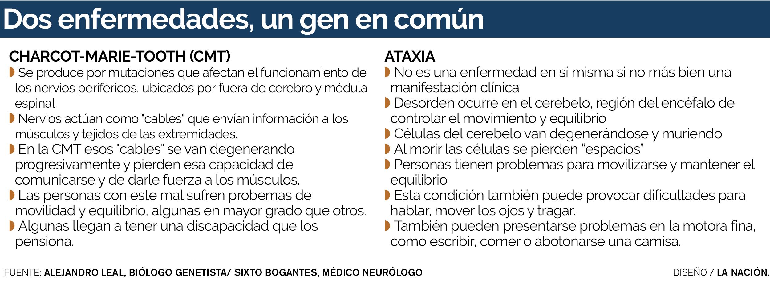 Dos costarricenses lideraron una investigación que comprobó que la mutación de un gen llamado PNKP está relacionada con la enfermedad neurodegenerativa Charcot-Marie-Tooth (CMT), que causa, entre otras cosas, problemas en el movimiento de las extremidades y en el equilibrio de las personas.