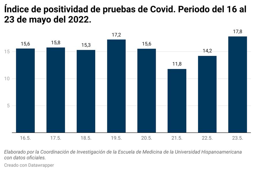 Otra de las preocupaciones de los investigadores son los altos niveles de positividad, es decir, del porcentaje de individuos que resulta positivo al hacerse la prueba diagnóstica en un laboratorio. Bajó muy ligeramente de 18,04% a 17,8%, es decir, 18 de cada 100 personas que se realizan el examen resultan positivas.