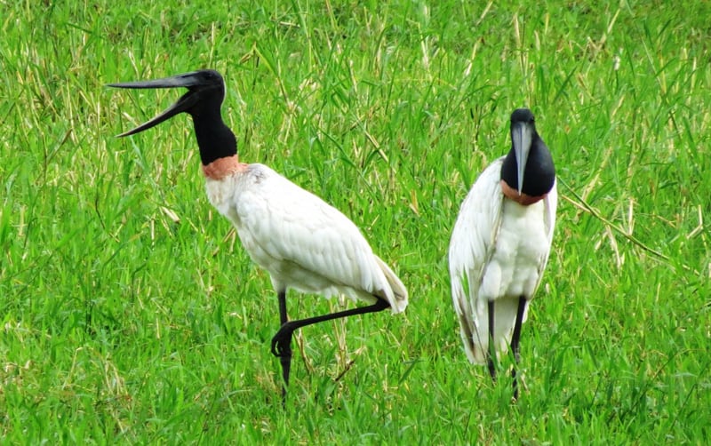 En extinción. En la actualidad, en Costa Rica se tiene registro de la existencia de entre 50 y 60 individuos, por lo que se ha elevado la especie a la categoría de “en peligro de extinción”. La pérdida de su hábitat es la principal causa a la que se atribuye el exterminio de este tipo de cigüeña. Conocida también como “galán sin ventura”, esta ave tiene una envergadura de 3 metros con sus alas extendidas. Su nido, mide alrededor de un metro de diámetro y es una plataforma conformada por ramas y palos pequeños. Este lecho es reutilizado por el jabirú año tras año para poner entre uno y cuatro huevos. Su época de anidamiento es entre octubre y febrero. El indicio de su arribo a Los Chiles se da en momentos en que el Refugio de Vida Silvestre Caño Negro –designado como sitio Ramsar en 1991– atraviesa por amenazas naturales como erosión, sedimentación y el drenaje de humedales.