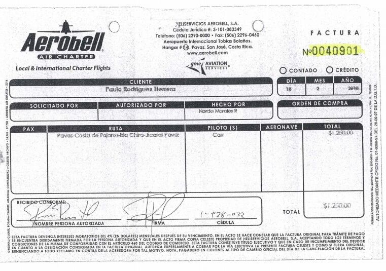 Ante el TSE, en efecto, se consignó que Rodríguez fue el donador de dos vuelos que salieron desde el aeropuerto Tobías Bolaños, en Pavas, rumbo a Costa de Pájaros, isla Chira y Jicaral, en Puntarenas, y que después retornaron a Pavas, en helicópteros de la empresa aérea Heliservicios Aerobell.
