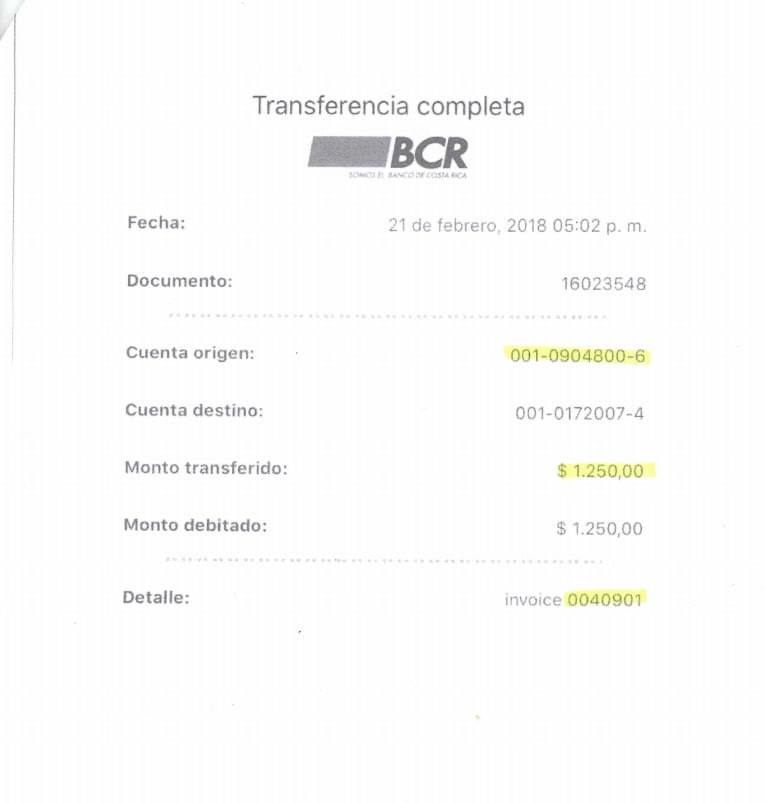 Según el órgano electoral, los otros dos giros se hicieron mediante transferencias electrónicas a la cuenta de la empresa aérea en el Banco de Costa Rica (BCR), desde dos cuentas bancarias distintas. Uno por $1.250 y el otro por $880.