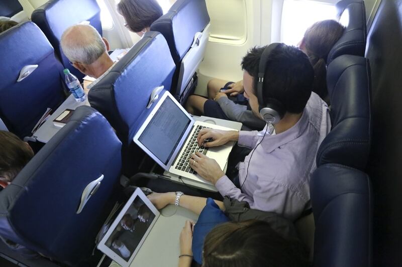 “La urbanidad común desaparece cuando la gente se mete en ese tubo de metal”, opinó James Patrick, un viajero frecuente de Newnan, Georgia. “Si creen que los debates y los puñetazos por los asientos reclinables eran malos, esperen hasta que los tipos empiecen a pelear porque alguien habla con muy alto en el teléfono”.