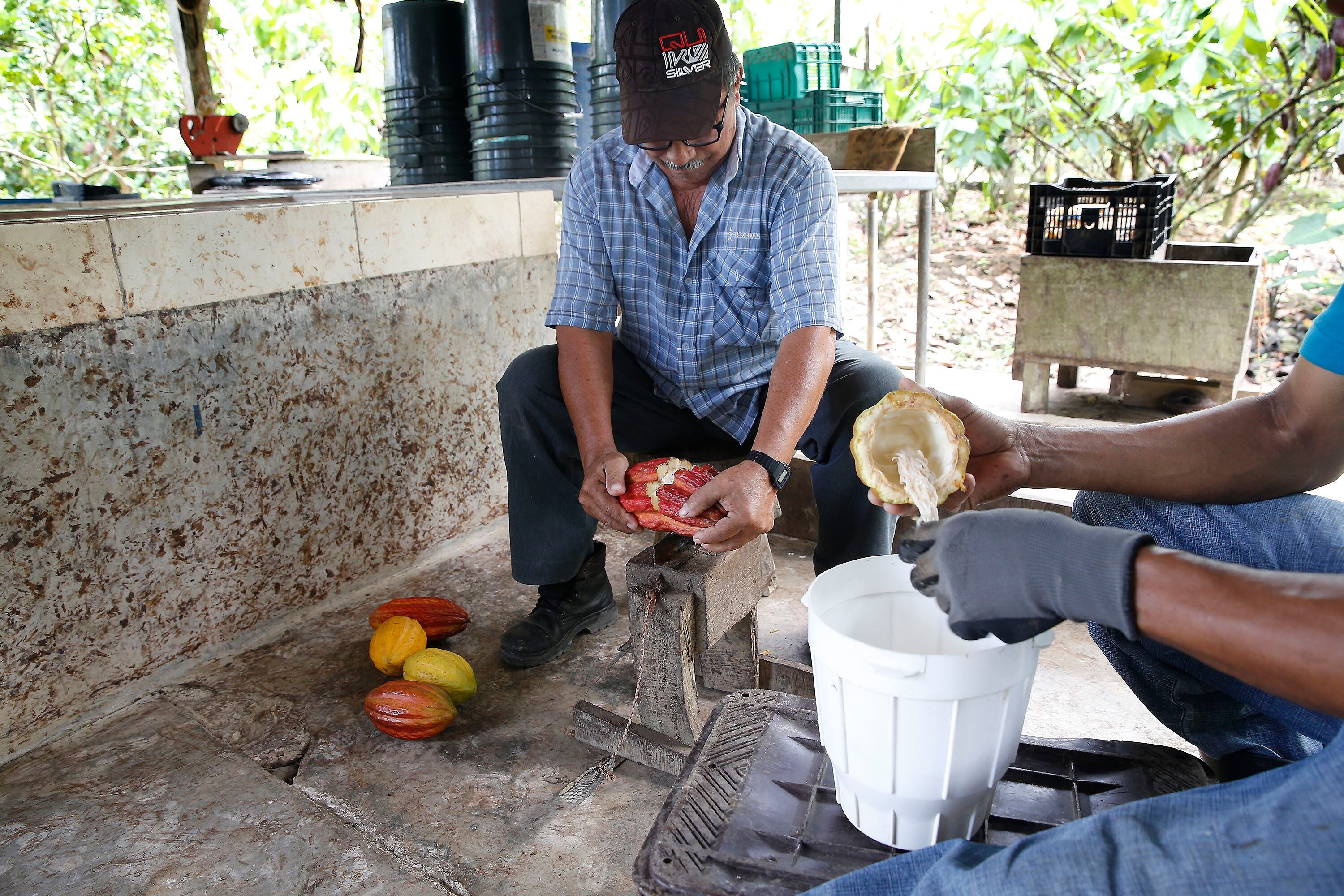 Responder a la demanda del chocolate significa que las fincas son más especializadas. Eso se denota en su tamaño y producción. Las parcelas de siembra de cacao son pequeñas, casi siempre exclusivas para la fruta y atendidas por pocas personas, a veces solo una.