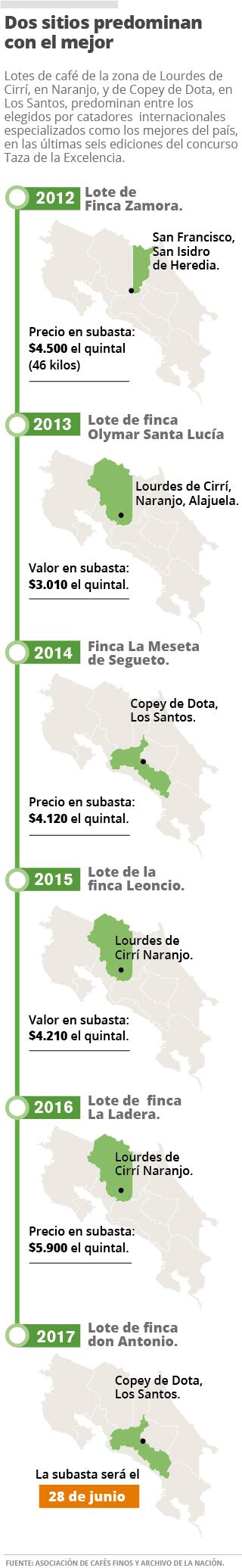 Los aromas frutales, entre ellos los cítricos, el cuerpo de la bebida y los sabores percibidos por catadores europeos, norteamericanos, asiáticos y latinoamericanos hicieron que lotes de café de la zona de Lourdes de Cirrí, en Naranjo, y de Copey de Dota, en Los Santos, predominen como los mejores de Costa Rica.