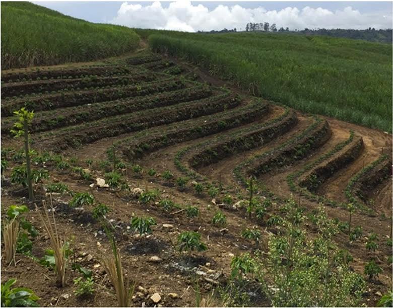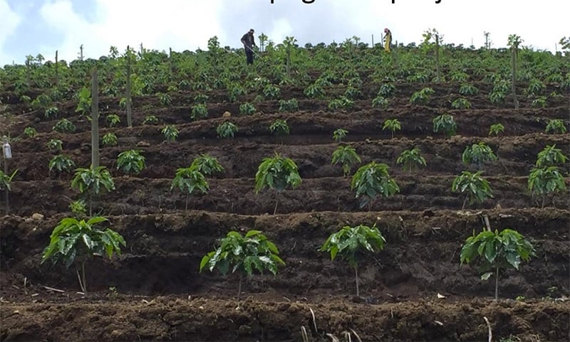 Ese avance se logró con la construcción de terrazas en la pendiente, explicó el director técnico del Icafé. Dijo que en la terraza se puede manejar la maquinaria para realizar la labores y se convierte también, además, en una medida para evitar la erosión del suelo, pues controla la escorrentía.