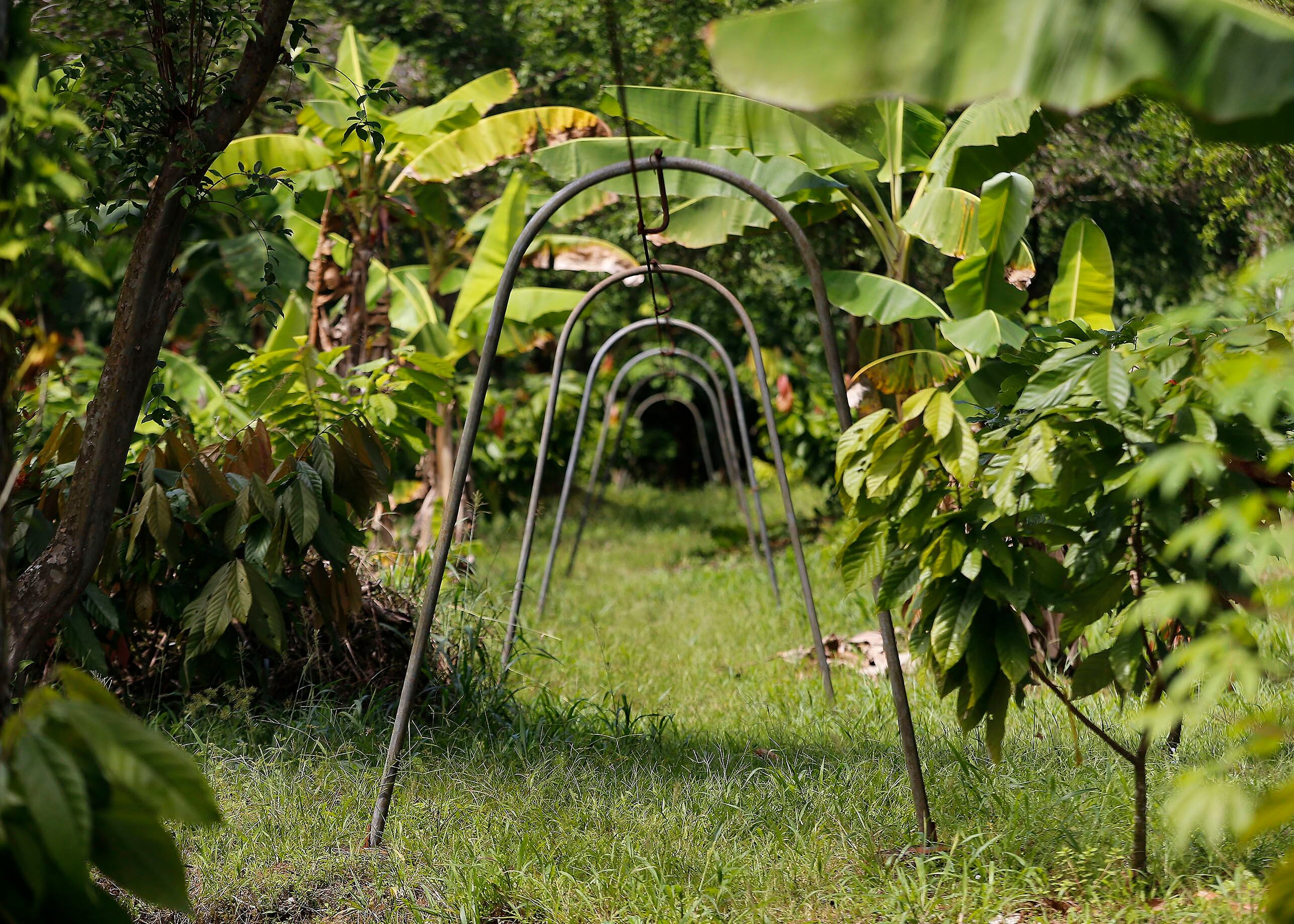 “Como ya estoy viejo yo vengo y me traigo la chuza (herramienta para cortes). Agarro un palito y le corto las hojas. Hago dos, tres palos. Trabajo una hora o dos horas aquí podando o me vengo y abono. Nunca le dedico un día entero a la finca, porque ya el cuerpo no aguanta”, declara don Marcial.