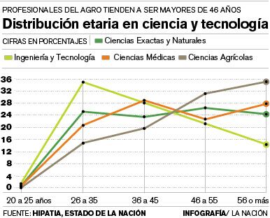 Por ejemplo, los profesionales dedicados a ingeniería y tecnología, de 26 a 35 años, representan el 35% del gremio, mientras que en agricultura es del 15%, según el Estado de la Nación.