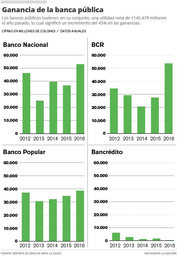 Al comparar este resultado contra el del 2015, cuando la utilidad fue de ¢100.381 millones, hubo un alza del 45% en el beneficio de estas instituciones.