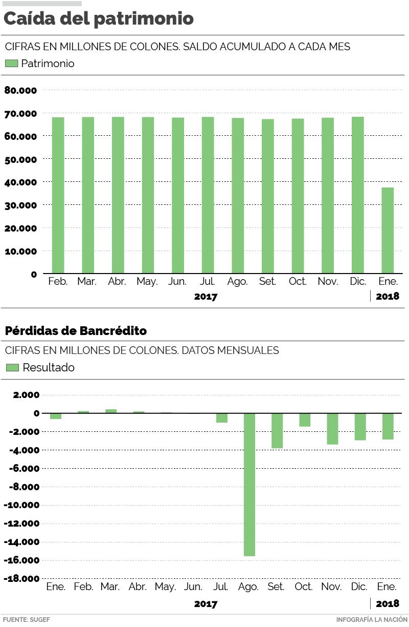 La institución tuvo pérdidas por ¢27.852 millones, el año pasado, y en enero anterior se le sumaron ¢2.855 millones (¢30.707 millones en total) las cuales se comieron el 45% de la reserva patrimonial de la entidad, confirmó Marco Hernández, interventor de Bancrédito.