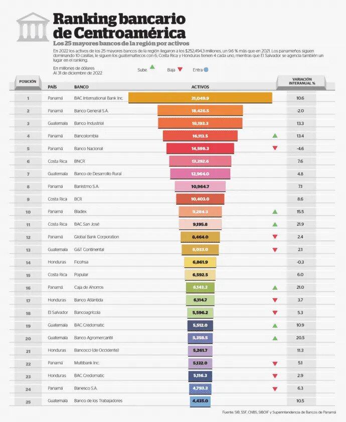En segundo lugar, Guatemala y Nicaragua crecieron un 14,6%: sus créditos subieron de $29.026,9 millones a $33.265,6 millones y de $3.444 millones a $3.914 millones, respectivamente; mientras que Panamá creció un 12%: de $89.312 millones a $110.113,2 millones.