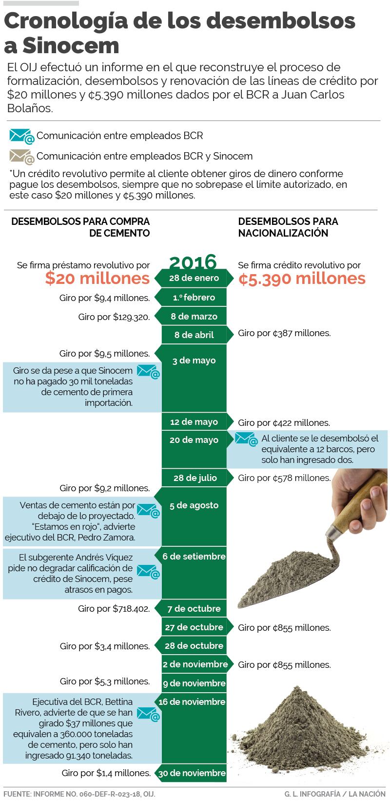 Así se desprende del Informe No. 060-DEF-R-023-18, del 21 de mayo pasado, realizado por la Sección de Delitos Económicos y Financieros del OIJ, en el cual se verificó la formalización, desembolsos y renovación de los préstamos revolutivos (el monto que se paga queda disponible para volverlo a utilizar), otorgados por el BCR a la empresa Sinocem Costa Rica.