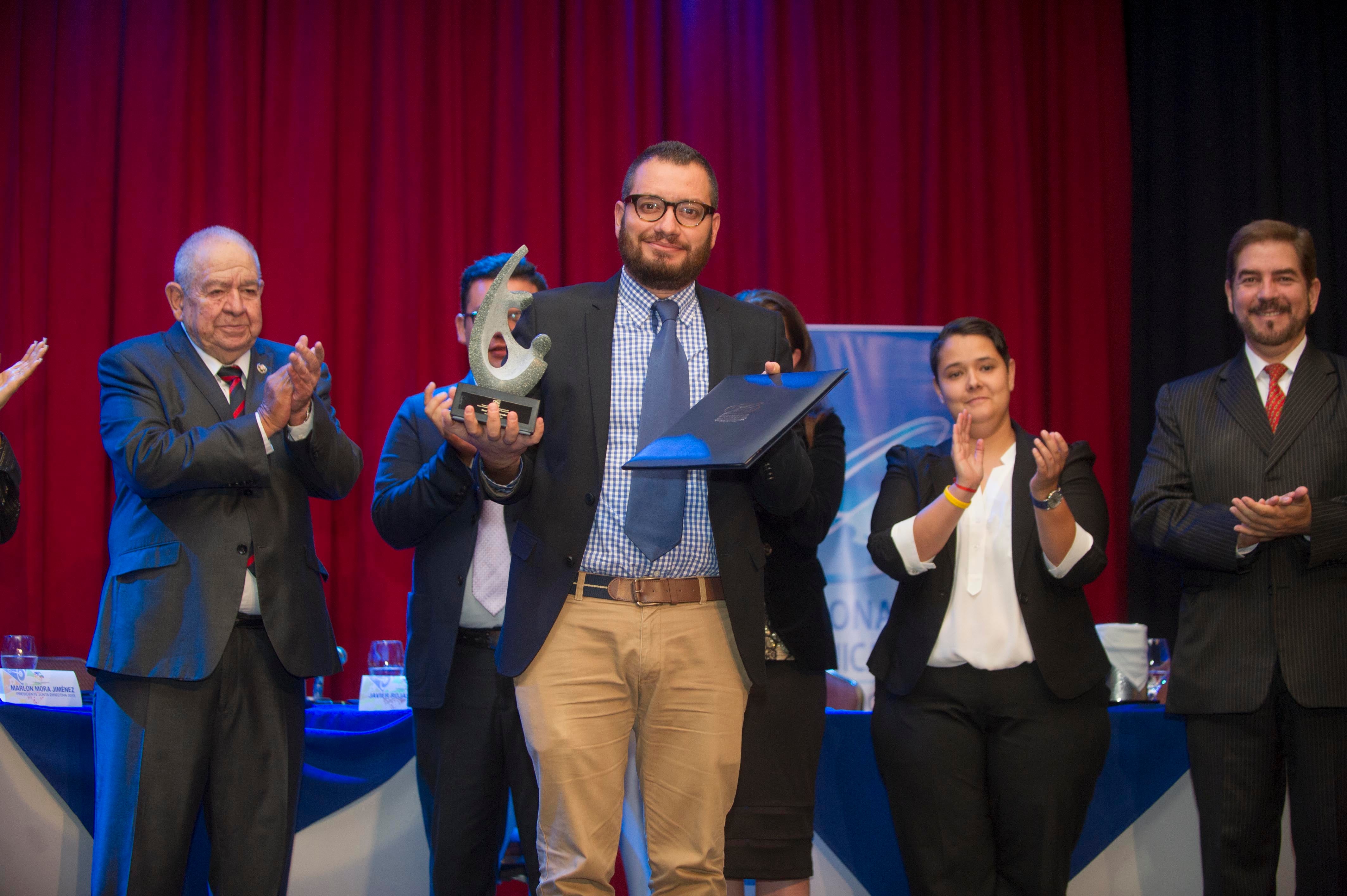 El periodista Óscar Rodríguez de la sección de Economía de La Nación ganó el premio Jorge Vargas Gené/Óscar Cordero Rojas 2015, uno de los galardones que entrega el Colegio de Periodistas.