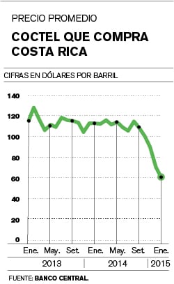 El costo del coctel de hidrocarburos que compra Costa Rica, cayó casi a la mitad en siete meses. Pasó de $114,17 el barril, en agosto pasado, a $60,57 en enero.