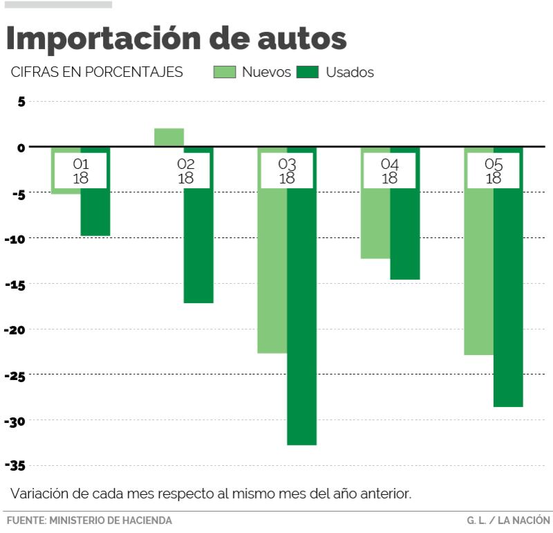 De acuerdo con la información suministrada por el Ministerio de Hacienda, en los primeros cinco meses de este año entraron al país 5.835 autos menos respecto al mismo periodo del año anterior, una caída de 16%, que afecta tanto a vehículos nuevos como usados.