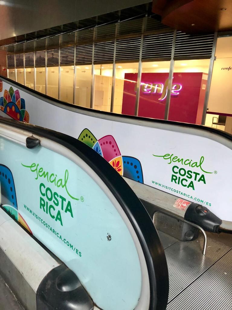 De manera simultánea, la estación de trenes de Atocha exhibe imágenes y videos de la naturaleza, fauna, actividades de aventura, cataratas, playas y los acercamientos con la cultura que un turista español encontrará en Costa Rica.
